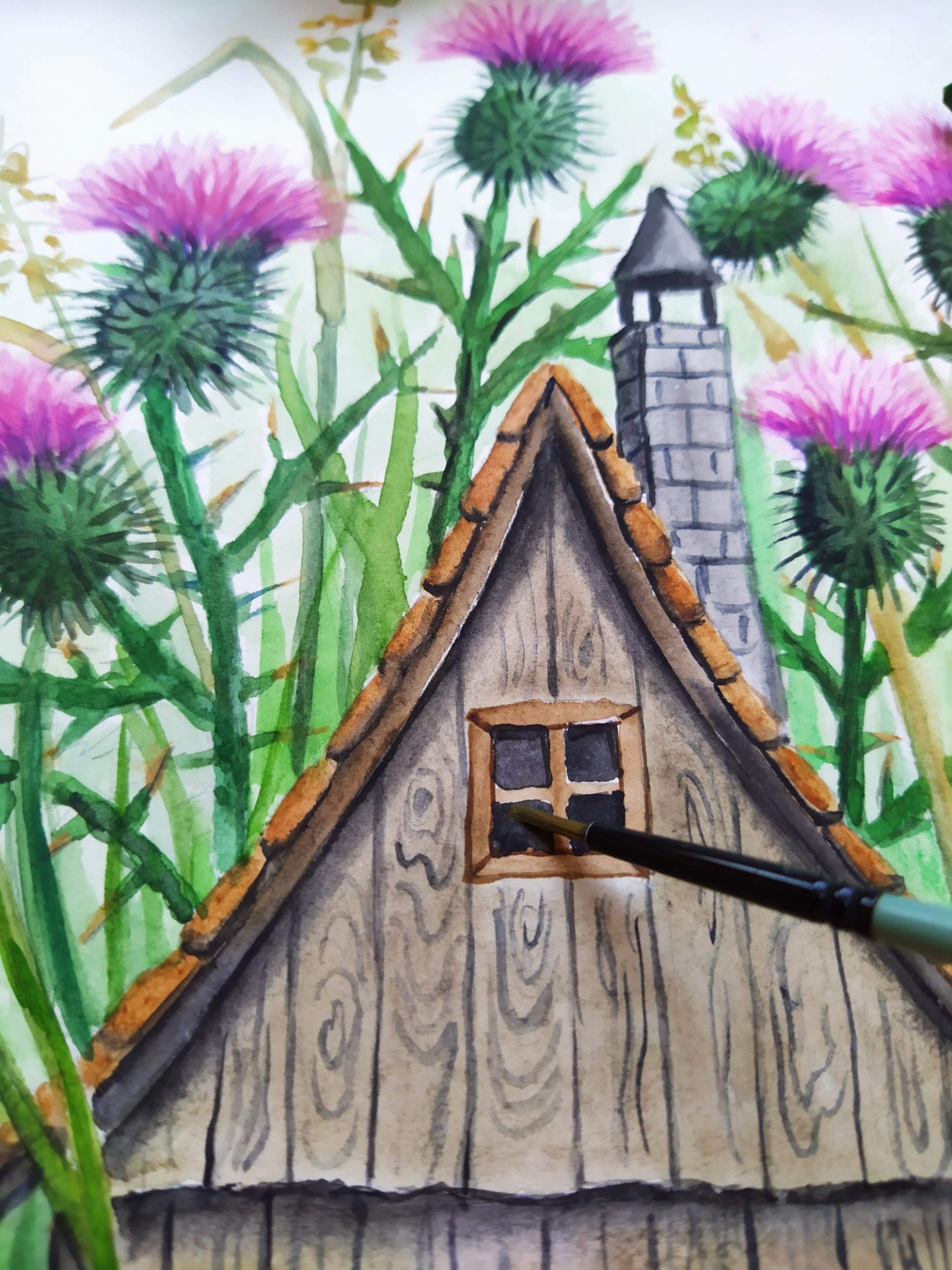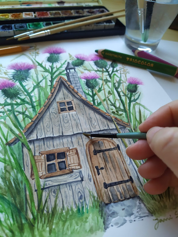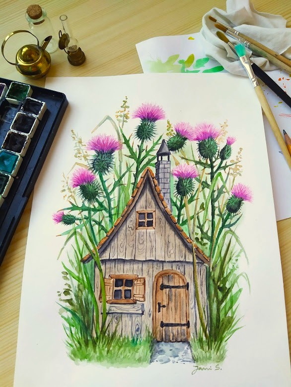 Chaloupka ukrytá v bodláčí pod strání, ostny těch bodláků její klid ochrání.